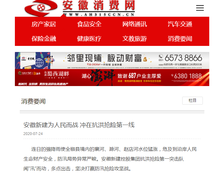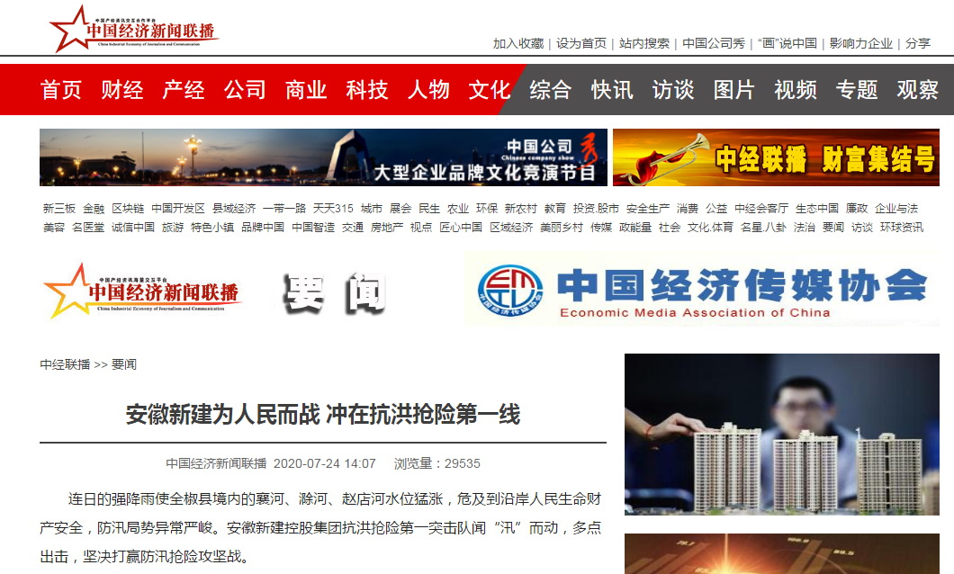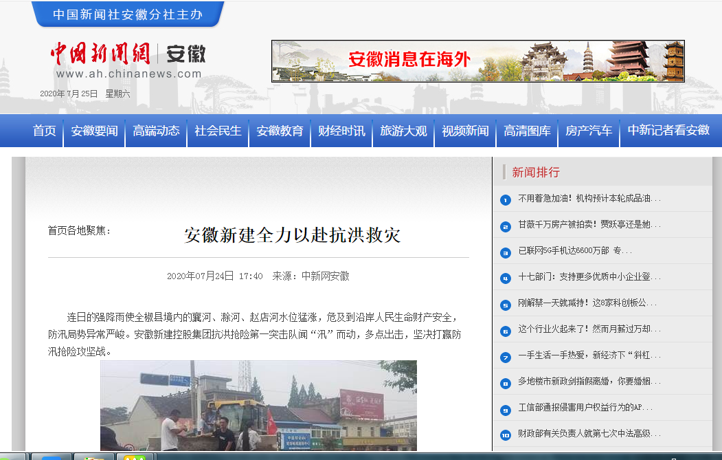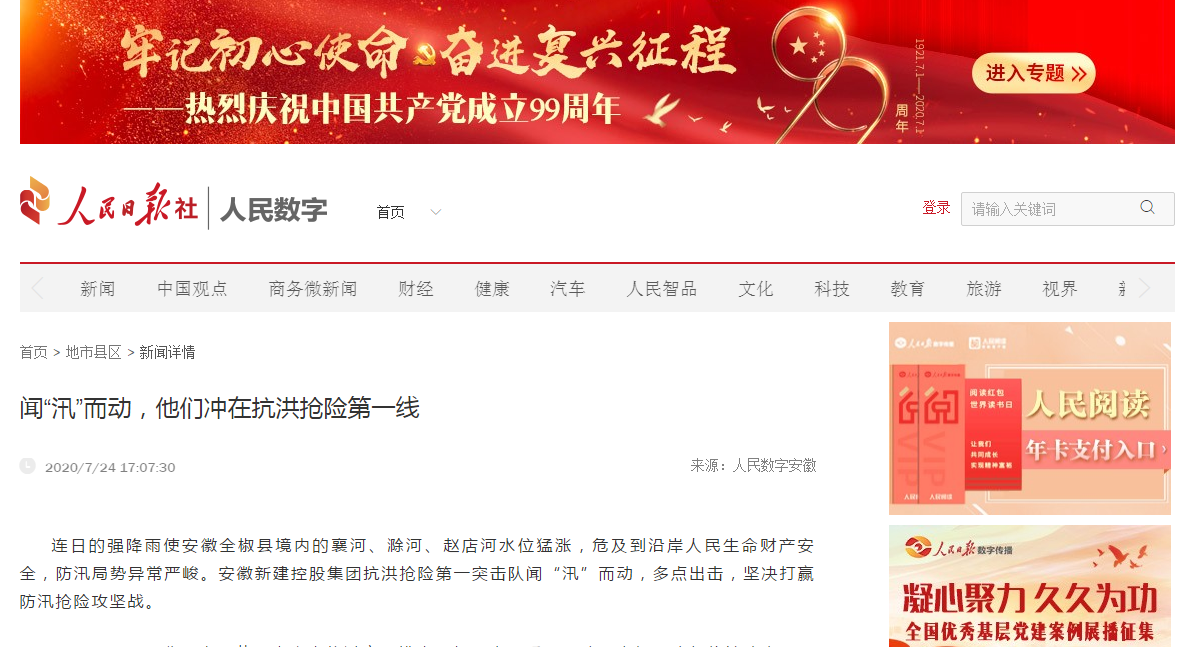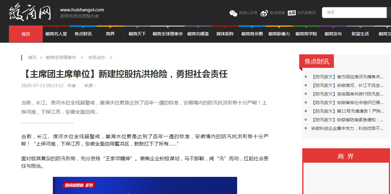 近日,安徽新建控股集團(tuán)組織動(dòng)員骨干力量踴躍參加抗洪搶險(xiǎn)的事跡,先后被人民日?qǐng)?bào)數(shù)字安徽網(wǎng)、中國(guó)新聞網(wǎng)、中國(guó)網(wǎng)、中國(guó)經(jīng)濟(jì)新聞聯(lián)播網(wǎng)、徽商網(wǎng)、安徽消費(fèi)網(wǎng)等各級(jí)媒體刊發(fā),充分展示了安徽新建人的社會(huì)責(zé)任與擔(dān)當(dāng),極大鼓舞了全公司廣大員工的士氣。