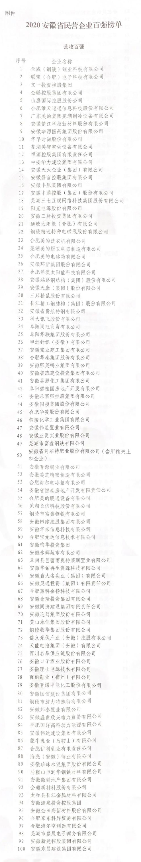 據(jù)人民網(wǎng)安徽頻道最新消息,8月13日上午,安徽省工商聯(lián)、安徽省經(jīng)信廳、安徽省市場監(jiān)管局聯(lián)合發(fā)布2020安徽省民營企業(yè)百強(營收)榜單。安徽新建控股集團有限公司再次進入榜單。