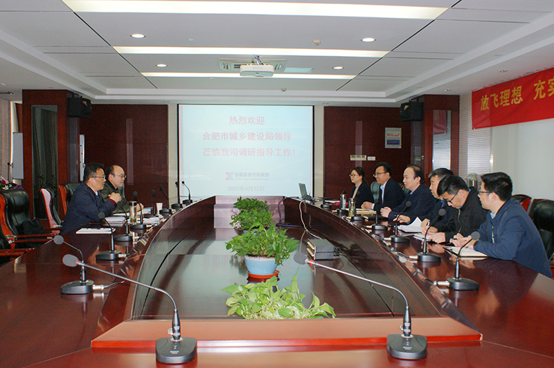 2021年4月12日下午,合肥市城鄉(xiāng)建設(shè)局調(diào)研員王磊,在市政公用管理處有關(guān)領(lǐng)導(dǎo)的陪同下走訪集團(tuán)公司調(diào)研指導(dǎo)工作。集團(tuán)總經(jīng)理王鵬程攜相關(guān)部門(mén)負(fù)責(zé)人進(jìn)行了熱情接待并參加座談。