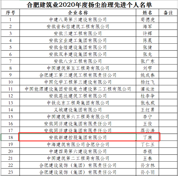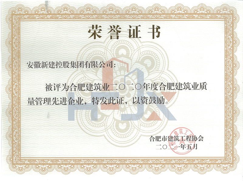 近日,合肥市建筑工程協(xié)會(huì)發(fā)布通知,合肥建筑業(yè)2020年度評(píng)優(yōu)評(píng)先工作已全面完成,獲獎(jiǎng)單位頒發(fā)領(lǐng)取榮譽(yù)證書。安徽新建控股集團(tuán)公司榮獲合肥建筑業(yè)2020年度質(zhì)量管理先進(jìn)企業(yè)、合肥建筑業(yè)2020年度優(yōu)秀施工企業(yè)等2項(xiàng)榮譽(yù)。同時(shí),集團(tuán)公司馬明、葉金鳳也被授予合肥建筑業(yè)2020年度優(yōu)秀項(xiàng)目經(jīng)理,丁康被授予合肥建筑業(yè)2020年度揚(yáng)塵治理先進(jìn)個(gè)人。