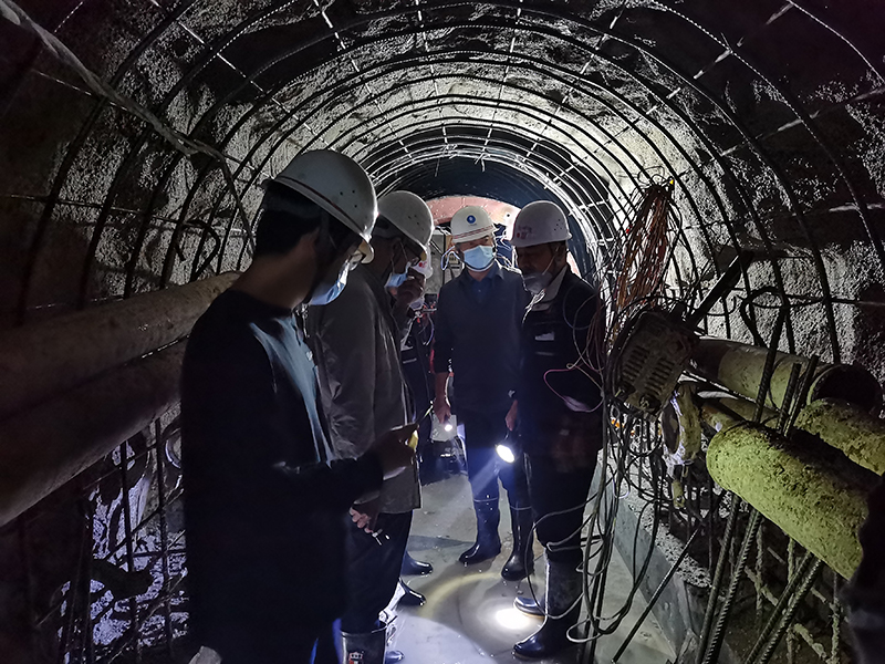 5號隧洞地質(zhì)條件復(fù)雜多變,巖芯較破碎,多呈碎塊狀,風(fēng)化帶中地下水較為豐富,多呈線狀、股狀。并且圍巖極不穩(wěn)定,開挖時有塌方、涌水現(xiàn)象。在施工過程中,面對這些困難,項目部全體員工毫不畏懼,嚴(yán)格遵循"短進尺、弱擾動、快循環(huán)、快支護、強支護、勤觀察、勤排水",一次支護緊跟掌子面,及早封閉開挖巖面的原則,合理安排工序,精心組織施工,優(yōu)化開挖方法,積極采取有效的管控措施,克服了施工中的一個個難題,順利完成了隧洞精準(zhǔn)貫通的硬任務(wù),最終實現(xiàn)整條隧道快速、高效、質(zhì)量安全“零事故"目標(biāo)。
