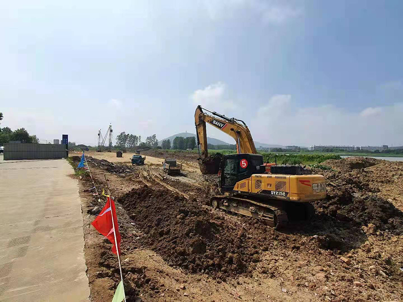 鏡頭一:在新站高新區(qū)銅陵北路(淮海大道--泗水路)道路工程項目,施工現(xiàn)場每日10余臺挖機正在連續(xù)作業(yè),壓路機來回穿梭,3臺大型路拌機不間斷拌合灰土輸送混合料,項目全員凝心聚力,攻堅克難,優(yōu)化施工組織設計及施工方案,嚴格做好技術交底、安全隱患排查等工作。截至目前,該項目完成K0+160-K0+220第一層灰土壓實,K0+220-K0+460第一層灰土布灰拌合、壓實以及泗水路棄土外運。