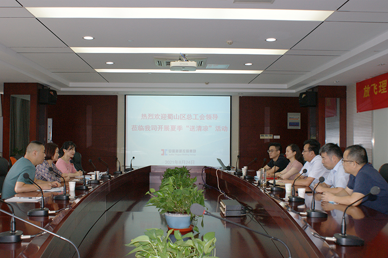 8月24日上午,蜀山區(qū)南七街道總工會專職副主席賈桂萍、副主席孫靜,以及洪崗社居委社會事務辦主任、社區(qū)工會副主席楊紅一行三人蒞臨我司走訪,并開展送清涼慰問活動。集團公司行政總監(jiān)賀軍、副總經(jīng)理劉波、總經(jīng)理助理董莉及公司有關部門負責人熱情接待。
