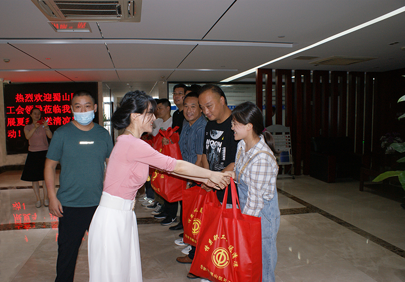 最后,街道總工會各位領導向公司員工代表贈送了50份包括毛巾、肥皂、花露水、風油精、電熱蚊香液、粗糧等豐盛物資的“送清涼”大禮包,并叮囑大家在落實好常態(tài)化疫情防控工作的基礎上,一定要注意做好防暑工作和自我保護,合理安排工作和休息時間,以飽滿的精神狀態(tài)投入到工作中。句句叮嚀送關懷,件件物品沁人心。本次活動的開展讓公司廣大職工深切感受到當?shù)卣凸M織的關心關懷與溫暖。?