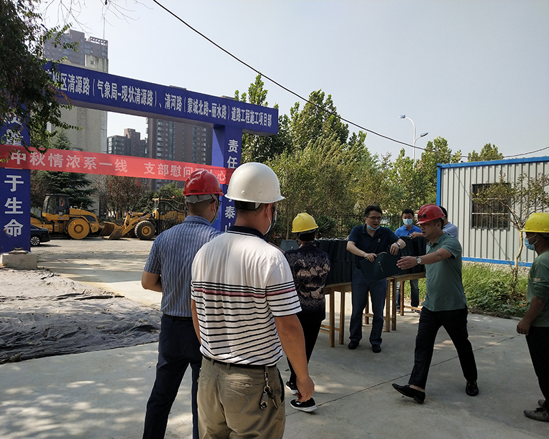 9月18日,在中秋、國(guó)慶雙節(jié)來(lái)臨之際,廬陽(yáng)區(qū)重點(diǎn)工程管理中心何平副主任、市政建設(shè)科科長(zhǎng)李繼明,在項(xiàng)目臨時(shí)黨支部書記陪同下組成慰問(wèn)組,來(lái)到公司承建的廬陽(yáng)區(qū)清源路(氣象局-現(xiàn)狀清源路)開展“中秋情濃系一線,支部慰問(wèn)暖人心”活動(dòng)。