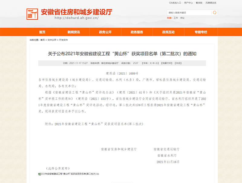 11月17日,安徽省住房和城鄉(xiāng)建設(shè)廳發(fā)布2021年安徽省建設(shè)工程"黃山杯"獲獎項目名單。安徽新建控股集團承建的合肥高新區(qū)復(fù)興路(創(chuàng)新大道——石蓮南路)、菖蒲路(長寧大道——三星東支路)、三星東支路(菖蒲路——銘傳路)道排及附屬工程項目榜上有名。