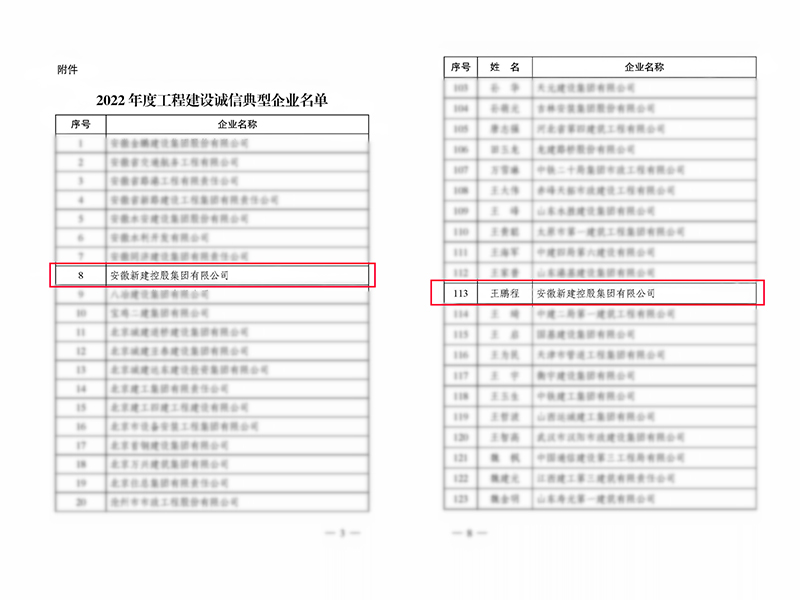 近日,中國(guó)施工管理協(xié)會(huì)發(fā)布了《關(guān)于公布2022年度工程建設(shè)誠(chéng)信典型企業(yè)名單的通知》和《關(guān)于公布2022年度工程建設(shè)誠(chéng)信企業(yè)家評(píng)價(jià)結(jié)果的通知》,安徽新建控股集團(tuán)有限公司榮獲“2022年度工程建設(shè)誠(chéng)信典型企業(yè)”,總經(jīng)理王鵬程榮獲“2022年度工程建設(shè)誠(chéng)信企業(yè)家”榮譽(yù)。
