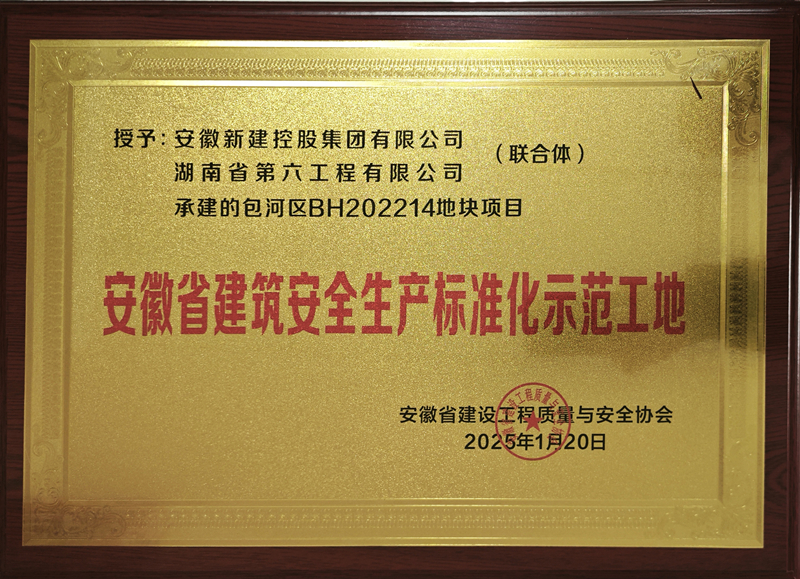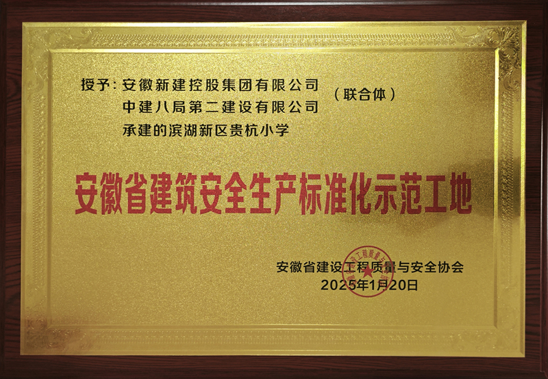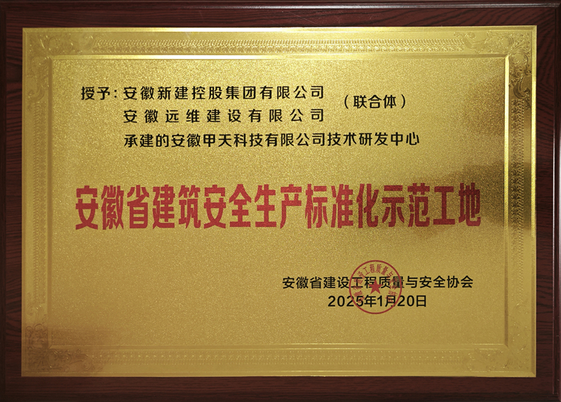 近日,安徽省建設工程質(zhì)量與安全協(xié)會頒發(fā)2024年度安徽省建筑安全生產(chǎn)標準化示范工地牌匾證書,集團公司聯(lián)合承建的濱湖新區(qū)貴杭小學、安徽甲天科技有限公司技術研發(fā)中心、包河區(qū)BH202214地塊項目三項工程喜獲殊榮。