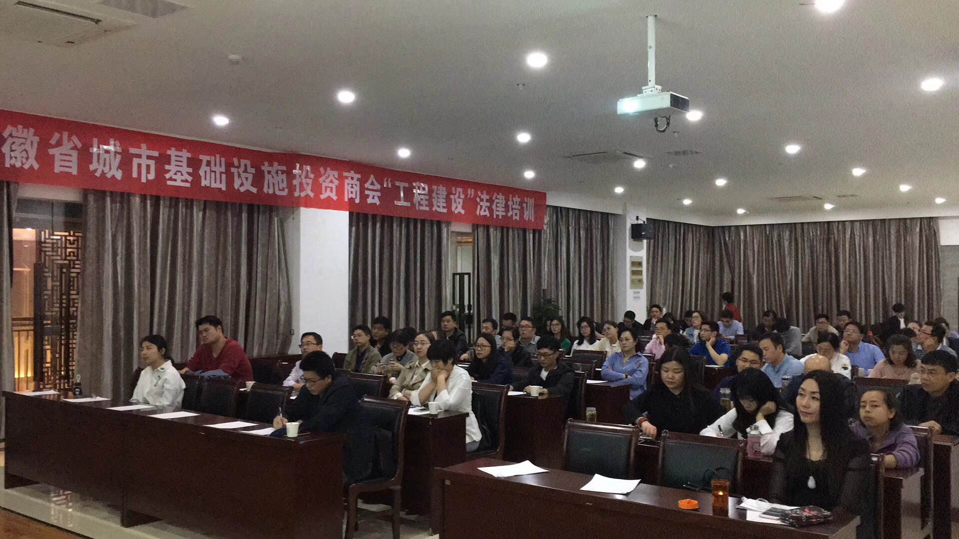 2018年4月19日,我公司部分管理層員工參加了由安徽省城市基礎(chǔ)設(shè)施投資商會(huì)舉辦的關(guān)于《重大建設(shè)施工項(xiàng)目中的主要法律點(diǎn)及其風(fēng)險(xiǎn)》法律專題培訓(xùn),培訓(xùn)講座由法律領(lǐng)域的知名專家、商會(huì)理事張華銀先生進(jìn)行專題授課,共100多名企業(yè)管理負(fù)責(zé)人參加了此次的培訓(xùn)。