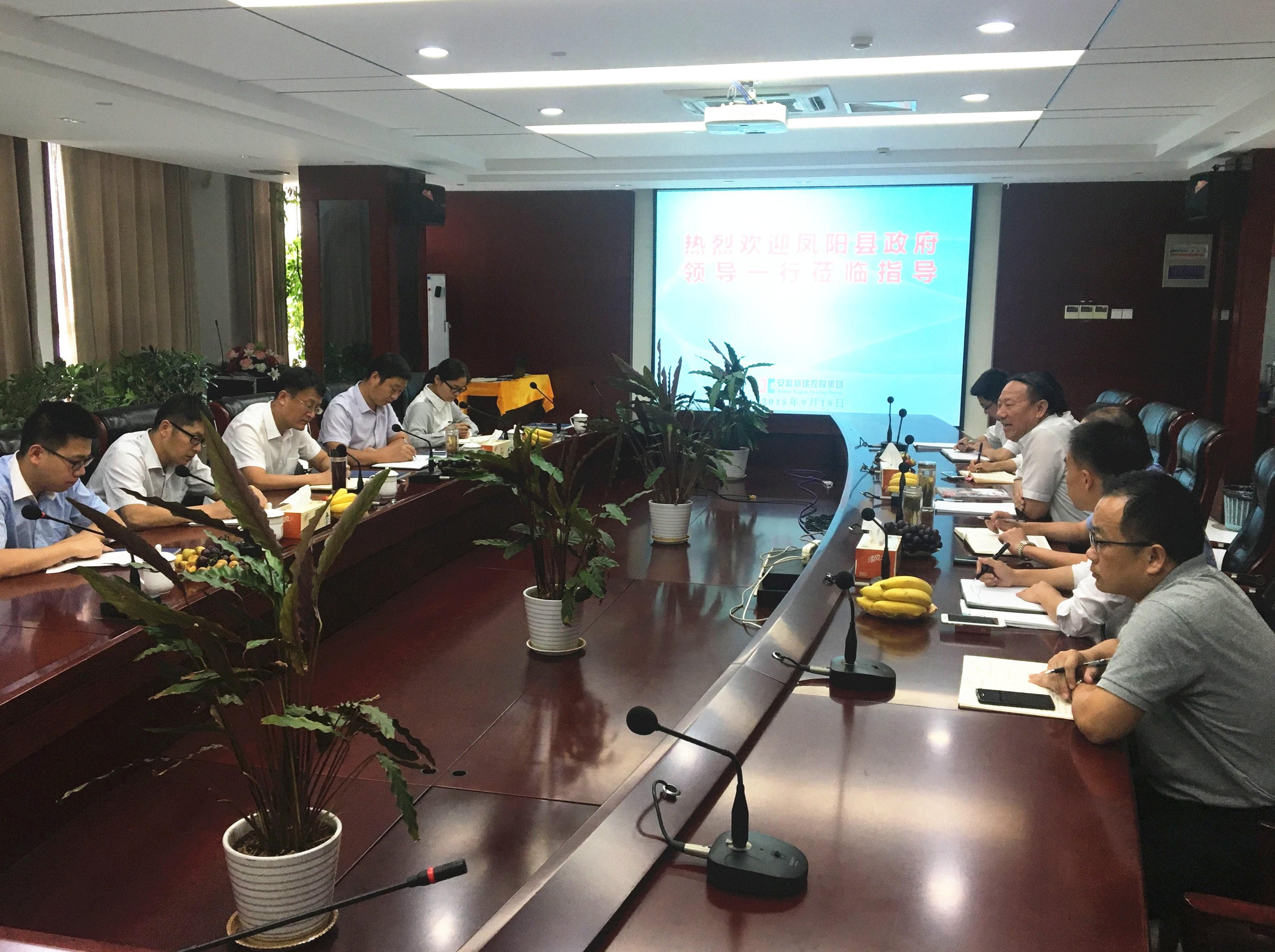 2018年9月18日下午,鳳陽縣重點(diǎn)工程建設(shè)管理局局長呂會鵬等一行領(lǐng)導(dǎo)蒞臨我公司考察指導(dǎo),洽談如意河水環(huán)境綜合治理工程PPP項(xiàng)目的合作事宜。安徽新建控股集團(tuán)有限公司董事長王杰英、總經(jīng)理王鵬程等全程參與座談。