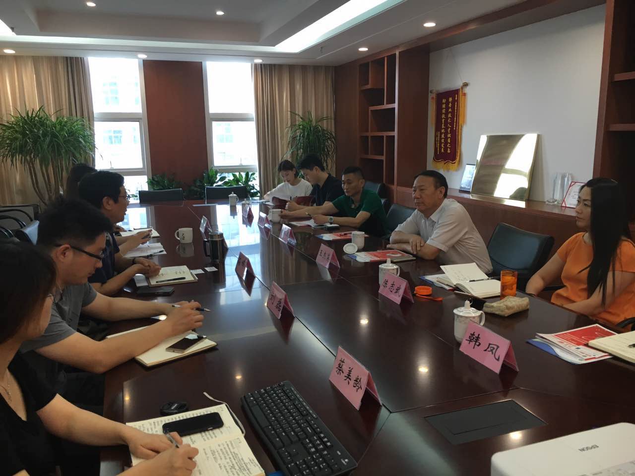 為加強商會(huì )之間的交流合作,2017年7月14日,安徽省城市基礎設施投資商會(huì )部分領(lǐng)導走訪(fǎng)了該商會(huì )副會(huì )長(cháng)單位安徽省電力工程行業(yè)商會(huì ),商會(huì )監事會(huì )主席—安徽新建控股集團董事長(cháng)王杰英參加了此次走訪(fǎng)學(xué)習活動(dòng)。