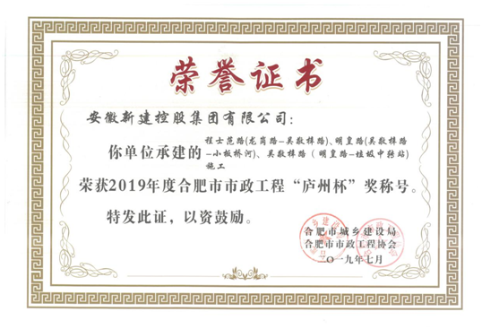 日前,從合肥市市政工程協(xié)會(huì)傳來(lái)喜訊,經(jīng)單位申報(bào)、部門推薦、合肥市市政工程協(xié)會(huì)組織資料審查研究、網(wǎng)上公示等程序,我公司承建的蜀山區(qū)玉鏡路、石牛路道排工程、長(zhǎng)豐縣鳳亭路(魏武路-濛河路)施工、程士范路(龍崗路-吳敬梓路)、明皇路(吳敬梓路-小板橋河)、吳敬梓路(明皇路-垃圾中轉(zhuǎn)站)施工項(xiàng)目榮獲“廬州杯”獎(jiǎng)。