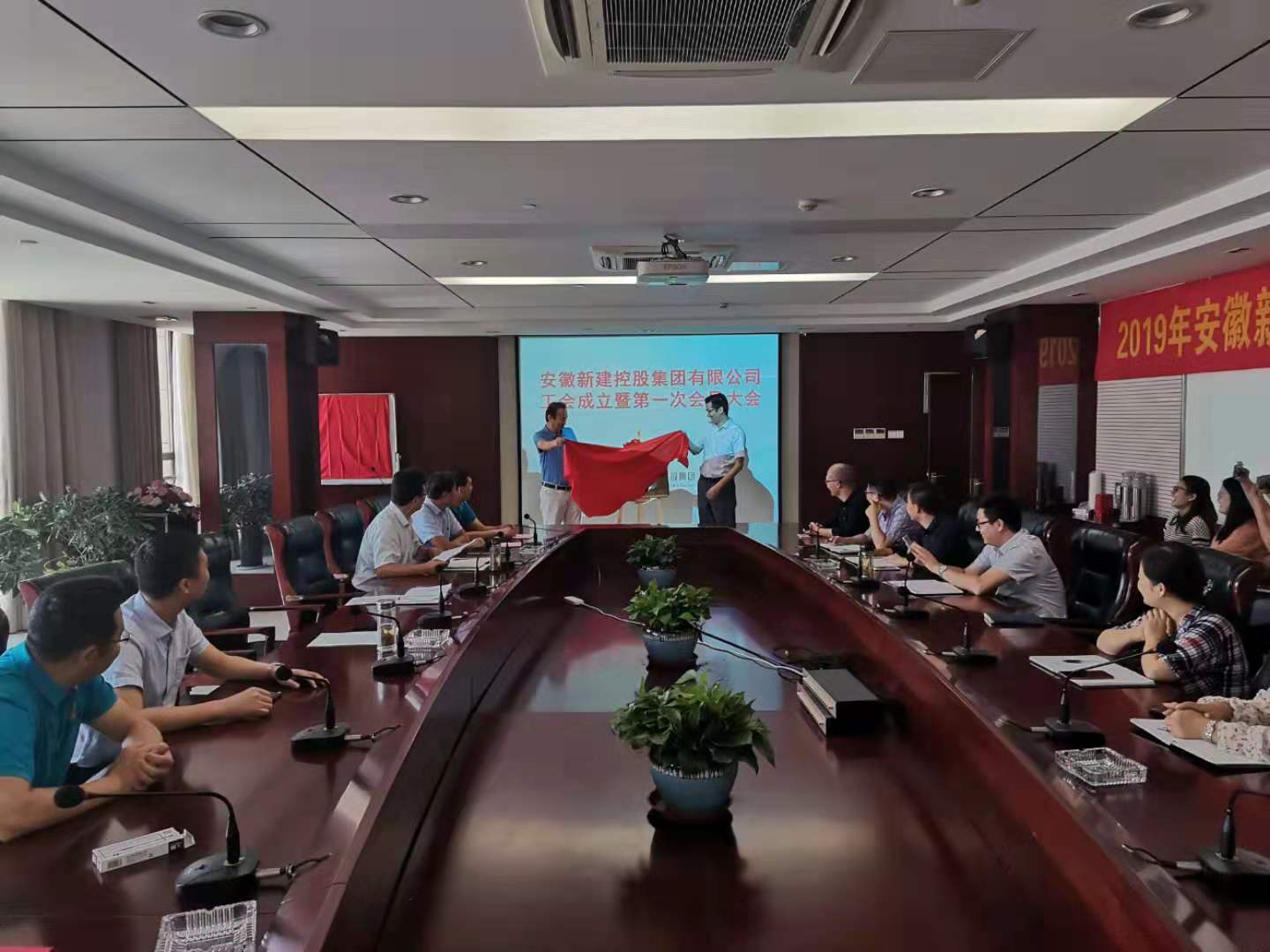 2019年9月30日上午,安徽新建控股集團(tuán)有限公司工會(huì)成立暨第一次會(huì)員大會(huì)勝利召開(kāi),會(huì)議由公司行政總監(jiān)賀軍主持,總經(jīng)理王鵬程、常務(wù)副總經(jīng)理王恒程、總經(jīng)理助理胡向華、總工程師李小寶、財(cái)務(wù)總監(jiān)葉炳宏,以及會(huì)員代表共50人參加了會(huì)議。